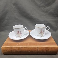 Porselein, Koffiekop met schotel Svenska Landskapsblommor Ljung Västergötland