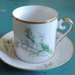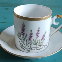 2 kopjes - Hackefors porselein - Kopje met gouden rand mok bloem