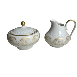 Hackefors Porslin Sweden Kan & Suikerpot Wit Goudkleurig