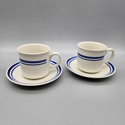 2 kopjes met schotels - Churchill Engeland - Mok Blue Stripe Retro Cup Plate