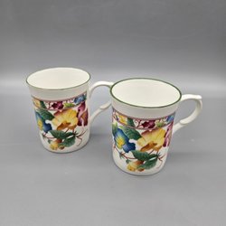 2 mokken met bloemen - Kingsbury Staffordshire - Kopje Koffiekopje Mok Porselein