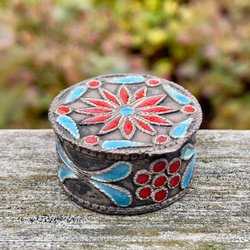 Buitenbehuizing voor zoutkom, geëmailleerd. Russische zilveren stempel?