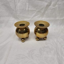 2 Kleine antieke messing kandelaars