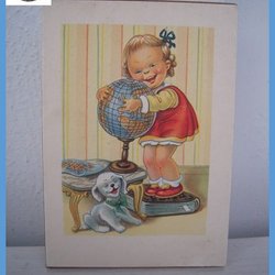 Kindmotief meisje dat de wereldbol omhelst op paneel VINTAGE