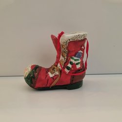 Vintage kerstman met klompen en kerstcadeauzakje uit de jaren 60