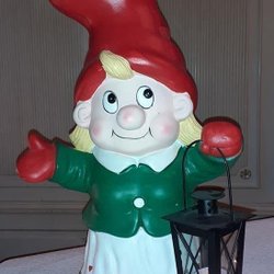 Ongebruikelijke kabouterfiguur in de vorm van een puntig lichaam met laarzen.