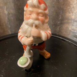 Oudere handgeschilderde kerstman, kabouters, porselein.