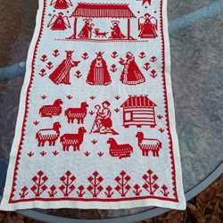 Ongelooflijk mooie kerst loper handgeborduurd, met de hand gezoomd