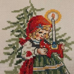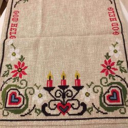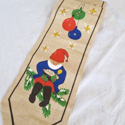 Mooie blauwe geborduurde kerst loper kerst tafelkleed met kabouters kruissteek handwerk kerst advent