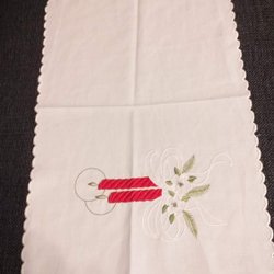 Oudere rode kersttafelkleed tafelkleed met geborduurde kerstverlichting kruissteek doek kerst advent