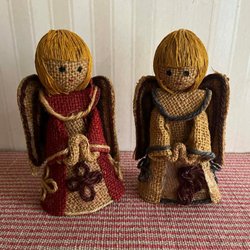 10 Vintage engelen in jute, jaren 60