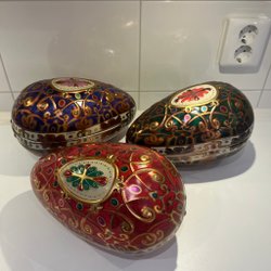 Om man vill ordna påskstämning i hemmet till en billig peng är Tradera en ypperlig plats att leta efter prisvärda påsksaker. Här finns annonser för det mesta som har med påsken att göra, inklusive begagnade påskdukar, bordstabletter, löpare, gardiner, kuddar och väggbonader med klassiska påskmotiv – både i nyare design och i retrostil. Prydnadskycklingar, påskharar, äggkoppar, gula ljus, ljusstakar och manschetter är andra vanliga påsksaker som ofta dyker upp i utbudet. Precis som påskgummor, tuppar, hönor och ägg i olika varianter. Förutom handmålade prydnadsägg, traditionella påskägg och godisgömmor av olika slag kan man även ha turen att stöta på begagnade designerägg i nyskick från formgivare som Lasse Åberg och Ulrika Hydman Vallien. Man kan också hitta äggvärmare och andra virkade påsksaker med fina mönster, liksom mängder av fjädrar och mindre pynt att hänga i påskriset. Däribland hela set med små påskkycklingar, glasdroppar, ägg, virkade blommor, hjärtan, skruvar, harar och liknande figurer. Tillgången på påsksaker varierar beroende på aktuella annonser, men oavsett vilken typ av påskpynt man föredrar att pryda sitt hem med finns det goda chanser att hitta någonting man tycker om här på Tradera.