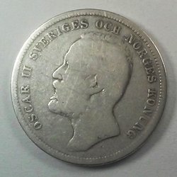 Oudere munten, Zweden. 1 Krona, 1876. Oscar II.