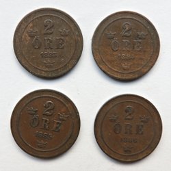4 stuks 2 öre 1883, 1884, 1885 en 1886 - Oskar II