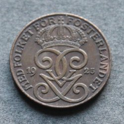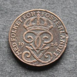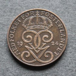 Sverige 1924 Mynt 2 öre GV Kv.8