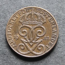 Gustav V 1 kr 1942 å.u.b 1+/01