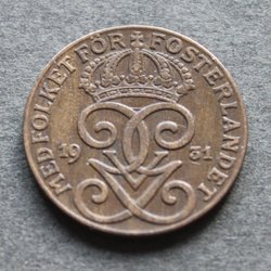 Gustav V 1 öre 1934 1+