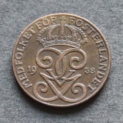 Gustav V 1 öre 1938 1+