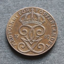 Gustav V 2 öre 1949 1+