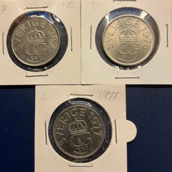 Svenska mynt präglade under Carl XVI Gustafs era berättar historien om en period av snabba förändringar, teknologiska framsteg, och sociala omvandlingar. Från 1970-talets industriella och kulturella blomstring till 2000-talets digitala revolution, har dessa mynt varit tysta vittnen till en dynamisk och ständigt föränderlig tid. Genom att samla på dem, blir man del av denna storslagna berättelse, sammanflätad i metall och tid. Om du bläddrar igenom Traderas rika utbud kommer du att stöta på en fascinerande samling av metalliska konstverk. Bland dessa finner man allt från jubileumsmynt, som firar speciella nationella evenemang eller årsdagar, till särskilda designförändringar som reflekterar tidsandan. Det finns också begränsade upplagor som endast präglades under en specifik period, vilka är särskilt värdefulla för samlare och historieentusiaster.