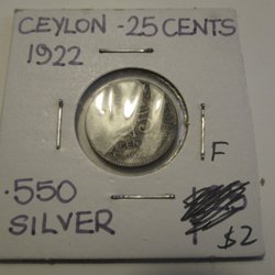 CEYLON 25 CENTS 1922 SILVER (KO-91)