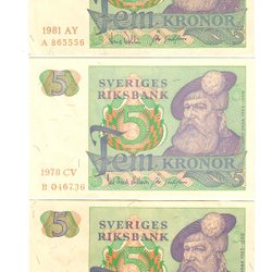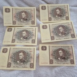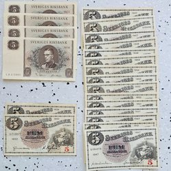 10 stuks 5-kronenbankbiljetten 1979CS in volgorde-Ongecirculeerd/UNC GRATIS VERZENDING BINNEN ZWEDEN