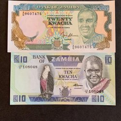Zambia set 10, 20 kwacha biljetten 2024 (2025) ongebruikt/UNC