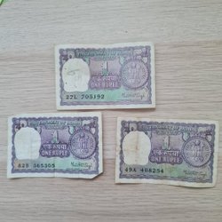 Sedel 1 Rupee u.å (1986-1989) - Indien. Ovikt, men typiska stickhål.