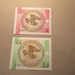 Kirgizië. 1 en 10 Tyiyn, ND (1993) UNC