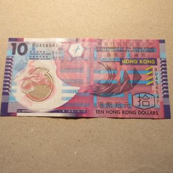 Hong Kong 10 Dollar, (2014) plastic/polymeer biljet