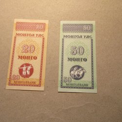 Mongolië 20 en 50 Möngö, ND (1993) UNC