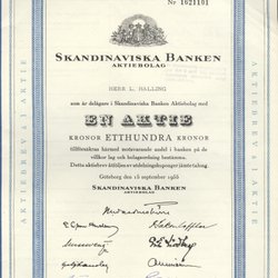 Skandinaviska Banken Aktiebrev uit 1955