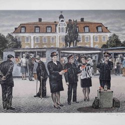 Reinhold LJUNGGREN Gesigneerde litho "Reddingsarm op het Eksjö-plein", 1976