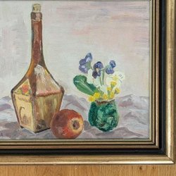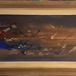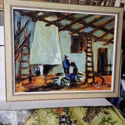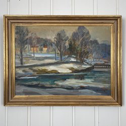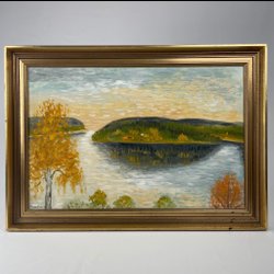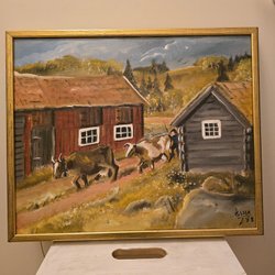 Olieverfschilderij op doek zonder lijst, berglandschap, gesigneerd en gedateerd Lennart Karlander 82