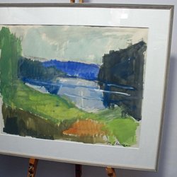 Lars Gunnar Holmqvist aquarelschilderij ouder kunstwerk circa 1960