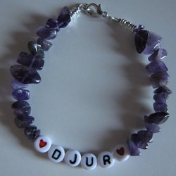 DIEREN armband handgemaakte paarse stenen kralen letters rode harten cadeau modern