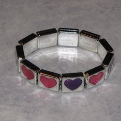Zilverkleurige kunststof armband unieke roze paarse harten sprankelende glitter leuk cadeau