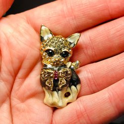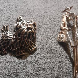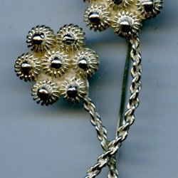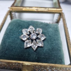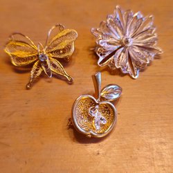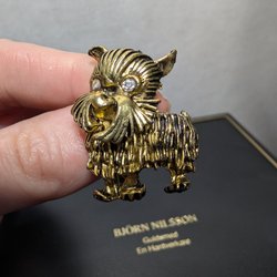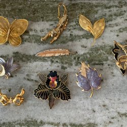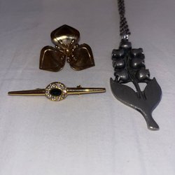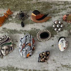 Broscher förknippas ofta med ädelstenar, guld och silver. Trenderna genom årtiondena har dock även lämnat plats för retrobroscher och färgglada plastvarianter. Broscher finns i ett närmast oändligt antal olika varianter, både trendiga och klassiska. I Traderas utbud av begagnade broscher kan man hitta broscher silver och broscher guld. I allra bästa fall finns en Chanel brosch eller två ute för auktion – en dröm för den som gillar att klä sig klassiskt stilrent. Den som vågar ta ut svängarna har ofta ännu mer att hämta. Broscher, smycken och kläder är ett intresse som delas av många. Individuella preferenser styr garderobens innehåll och dessa förändras över tid. Titta igenom utbudet av aktiva annonser så kan du upptäcka broscher som gjort sitt i en persons smyckesgarderob, men som blir huvudnumret i din. Hos Tradera har du möjlighet att hitta begagnade broscher i alla prisklasser, från slutsålda varianter från budgetkedjorna till diamantprydda varianter från välkända juvelerare.