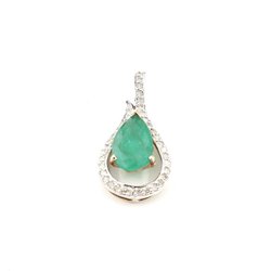Diamanten hanger van 9k goud met een groene steen