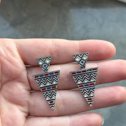 Vintage oorbellen geëmailleerd metaal een stukje van het email weg op een zie foto's