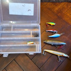 Een kleine doos met wat zinkers en haakjes