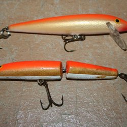 Twee vishaken in oranje en goud RAPALA