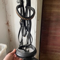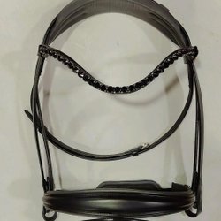 Hoofdstel met zwarte kristallen en grijze padding maat cob