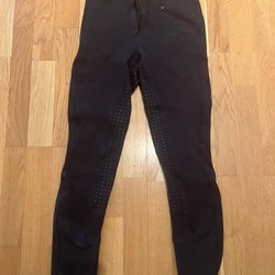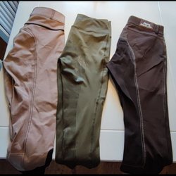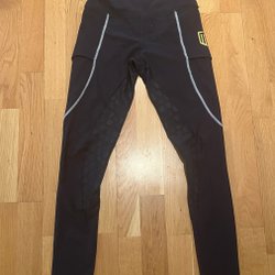 Geheel ongebruikte turquoise/donkerblauwe rijbroek van het merk DOMINO, maat 34