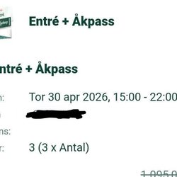 Ritpas en toegang tot Liseberg voor 3 personen. 30/4.