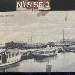 Karlshamn-panorama over de haven Handgekleurd