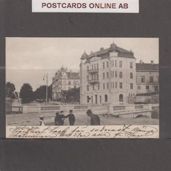 Een deel van Lidköping met het stadshotel, winterbeeld verzonden in 1922