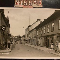 Hjo Hamngatan met slagerij en tabakswinkel