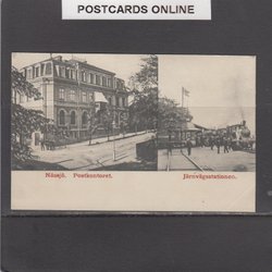 Nässjö Postkontoret en Järnvägsstationen 2-beeldkaart