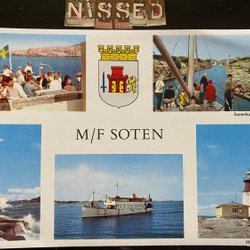 Kaart met 5 afbeeldingen van M/S Soten inclusief de vuurtoren van Hållö
